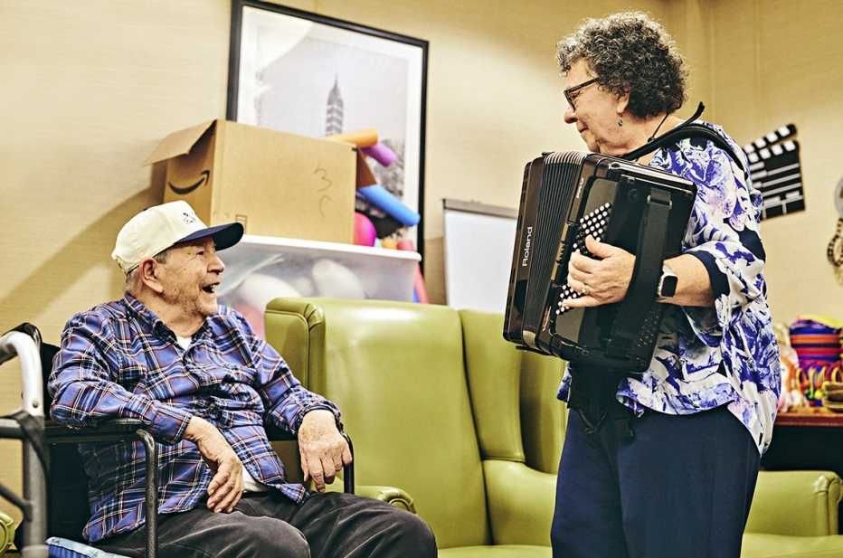 Concetta Tomaino was 24 years old in 1979 when she graduated with a master’s degree in music therapy from New York University. She would go on to become a pioneer in the use of music to treat dementia, and today, at 69, she is a legend in the field, the dedicatee of neurologist Oliver Sacks’ 2007 book Musicophilia, the past president of the American Association for Music Therapy, and the executive director and cofounder of the Institute for Music and Neurologic Function housed at Wartburg, a senior living facility in Mount Vernon, New York, where I recently visited her. Cheerful and soft-spoken, with a round face and curly brown hair, the Bronx-born Tomaino was, she says, “a big science kid.” But she also played accordion and trumpet. In college, she blended her loves of music and science when she decided to switch from premed to a degree in music therapy.